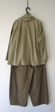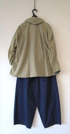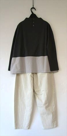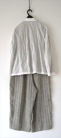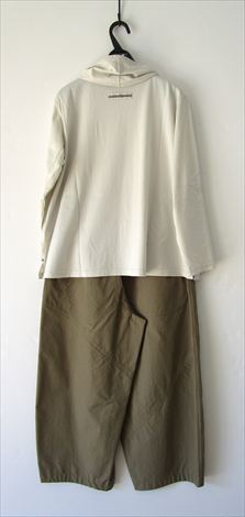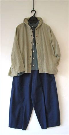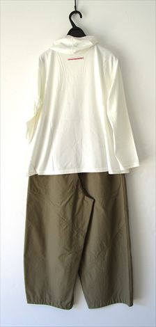 生成りに近いライトベージュの綿麻チノストレッチバルーンパンツと合わせました