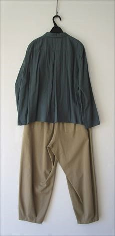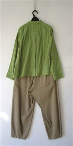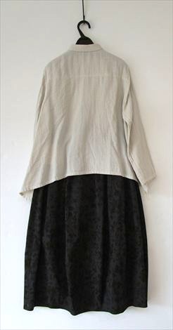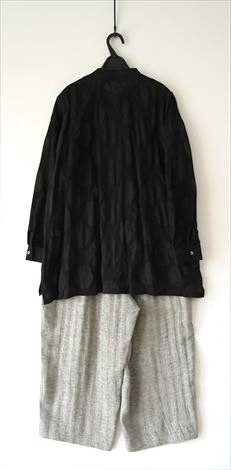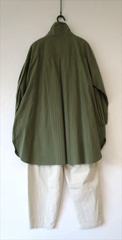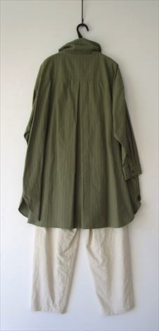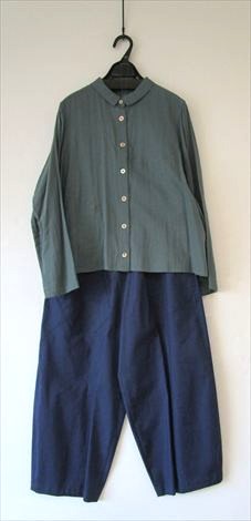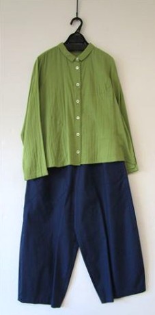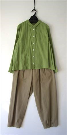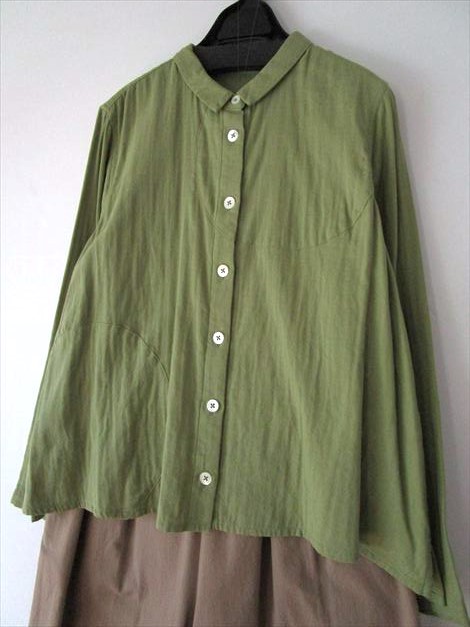 前身頃にさり気なく丸い切り替えを入れ 小さなシャツカラーでゆったり幅