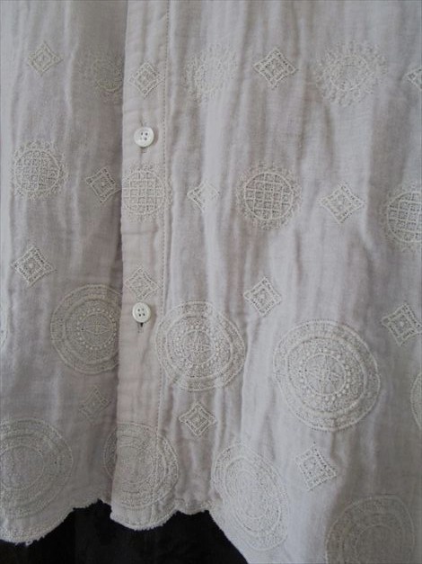 同色の刺繍がきれいで裾は刺繍レースのカーブに沿ってスカラップ仕上げ