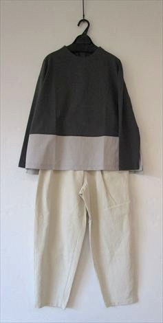 パンツ 2164026 ( +2 ) 綿75%・麻25% ¥20,900 生成り・ネイビー