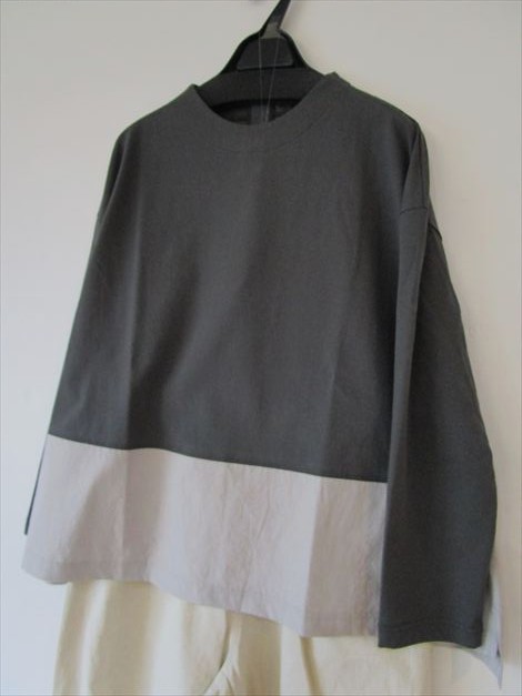 裾に布帛を切り替えたボトルネックカットソープルオーバーはサラッと薄手で長い期間役立ちます