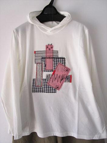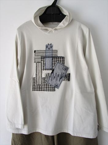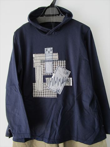 胸元のパッチワーク刺繍が可愛いチビフードプルオーバー