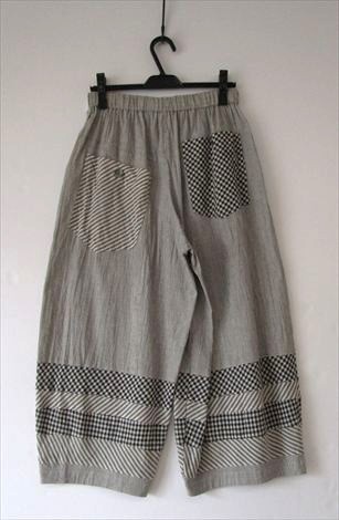 このパンツは細ストライプとギンガムとストライプ 3種類の生地を使っています