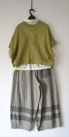 パンツはざっくり感が魅力のリネンヘリンボン 風合いがステキですよね!