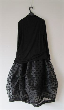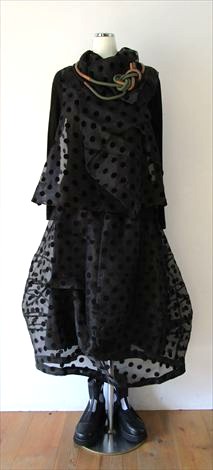 スカートも複雑なタック使いで独特の立体感と雰囲気を出しています