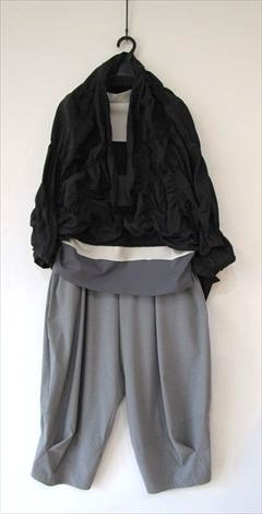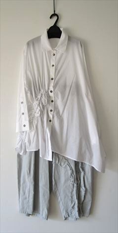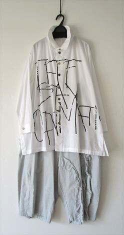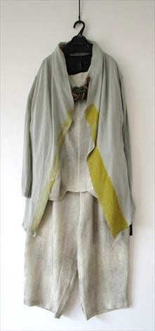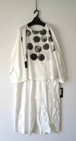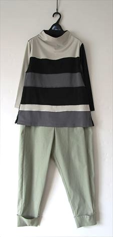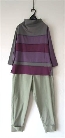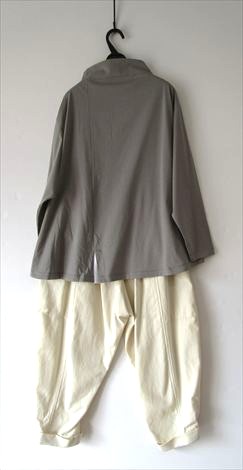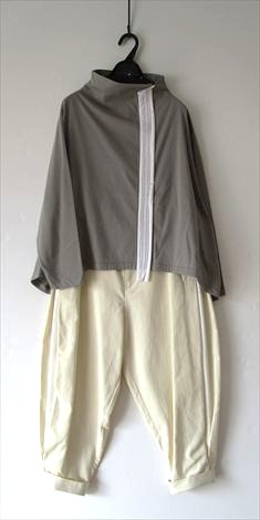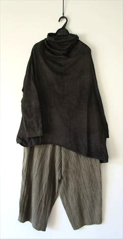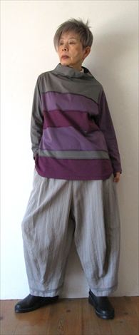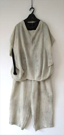 生成りにグレーのぼかし染めがとても美しいプルオーバーとパンツ