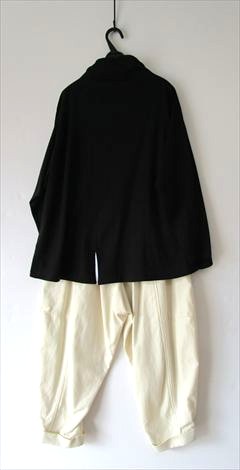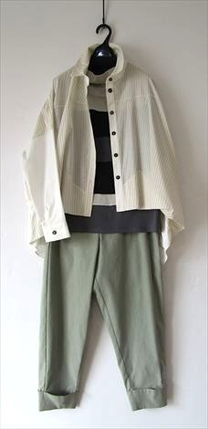 ざっくりとしたシワ加工の生地を洗いざらしの風合いに染めたパンツと合わせました