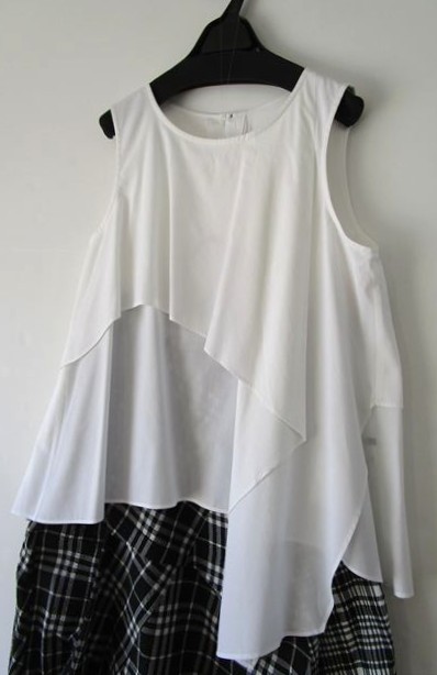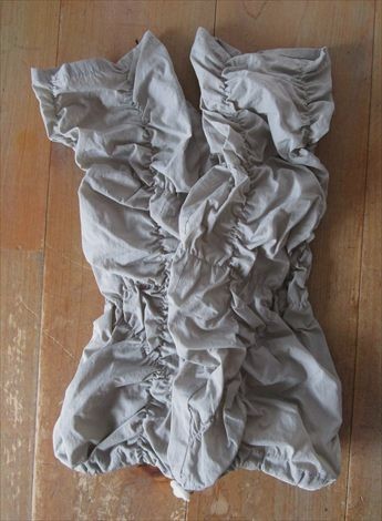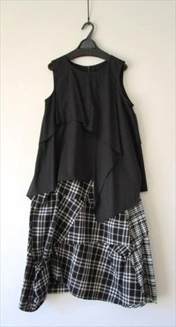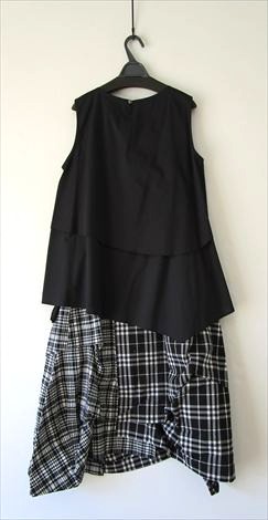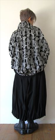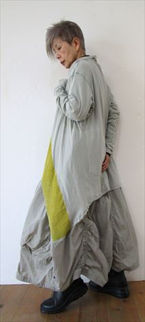 裾はタックで細く絞りグレー無地の生地を挟んで二重にしています