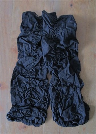 パンツは伸縮性のある生地をたっぷり使い裾で細かく畳んで裏側にゴムテープを貼っています