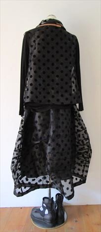 フロッキードットプリントのポリエステルオーガンジーベストとスカート