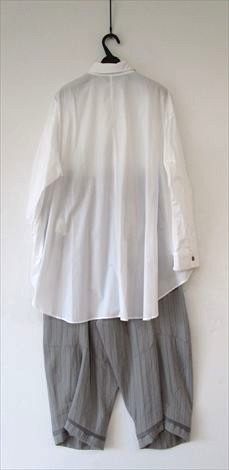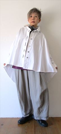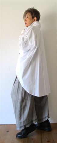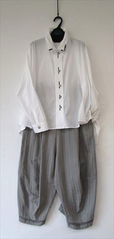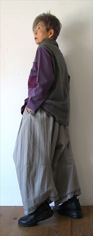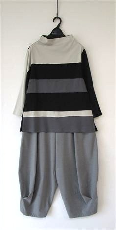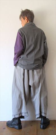 淡いグレーに黒のストライプパンツも凝ったデザインに惹かれます