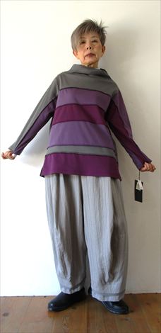 プルオーバー 76010166 ( MOYURU ) 綿100% ¥28,600 グレー×ワイン系・モノトーンボーダー