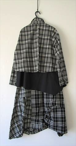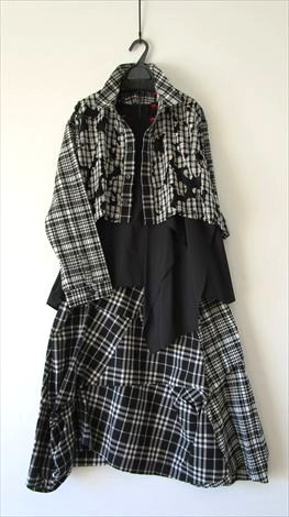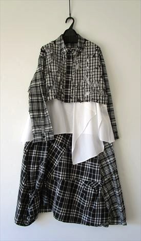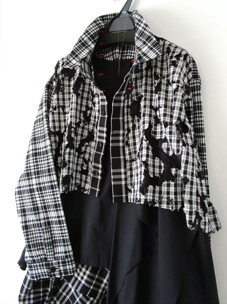 表のチェック地を抽象柄に何か所もカットしてレースを見せる素晴らしいデザインです