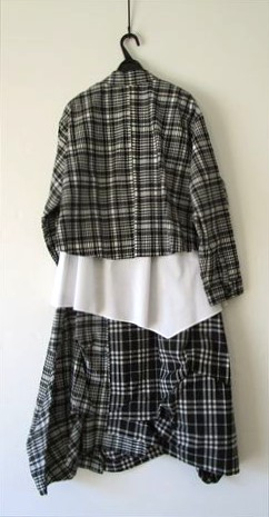 2種類のチェックを組み合わせたブラウスジャケットとスカート