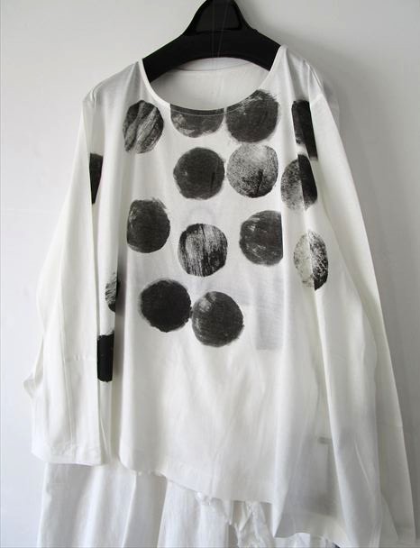 インのぼかしドットプリントプルオーバーはツルツル・サラサラの強撚天竺カットソー