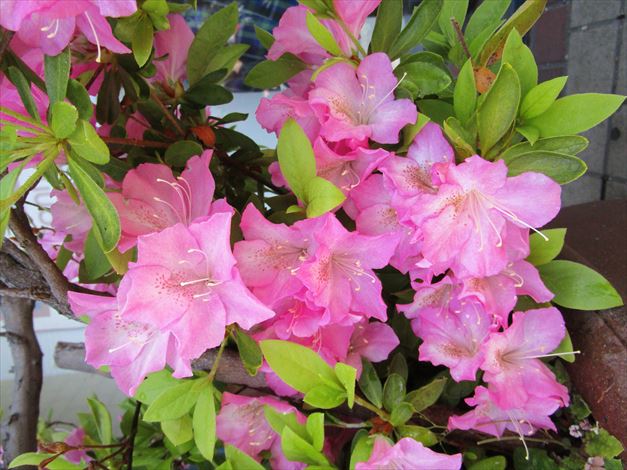 いつもは桜が終わる頃に咲き始めるつつじの枝に いくつかピンクの蕾が膨らんで